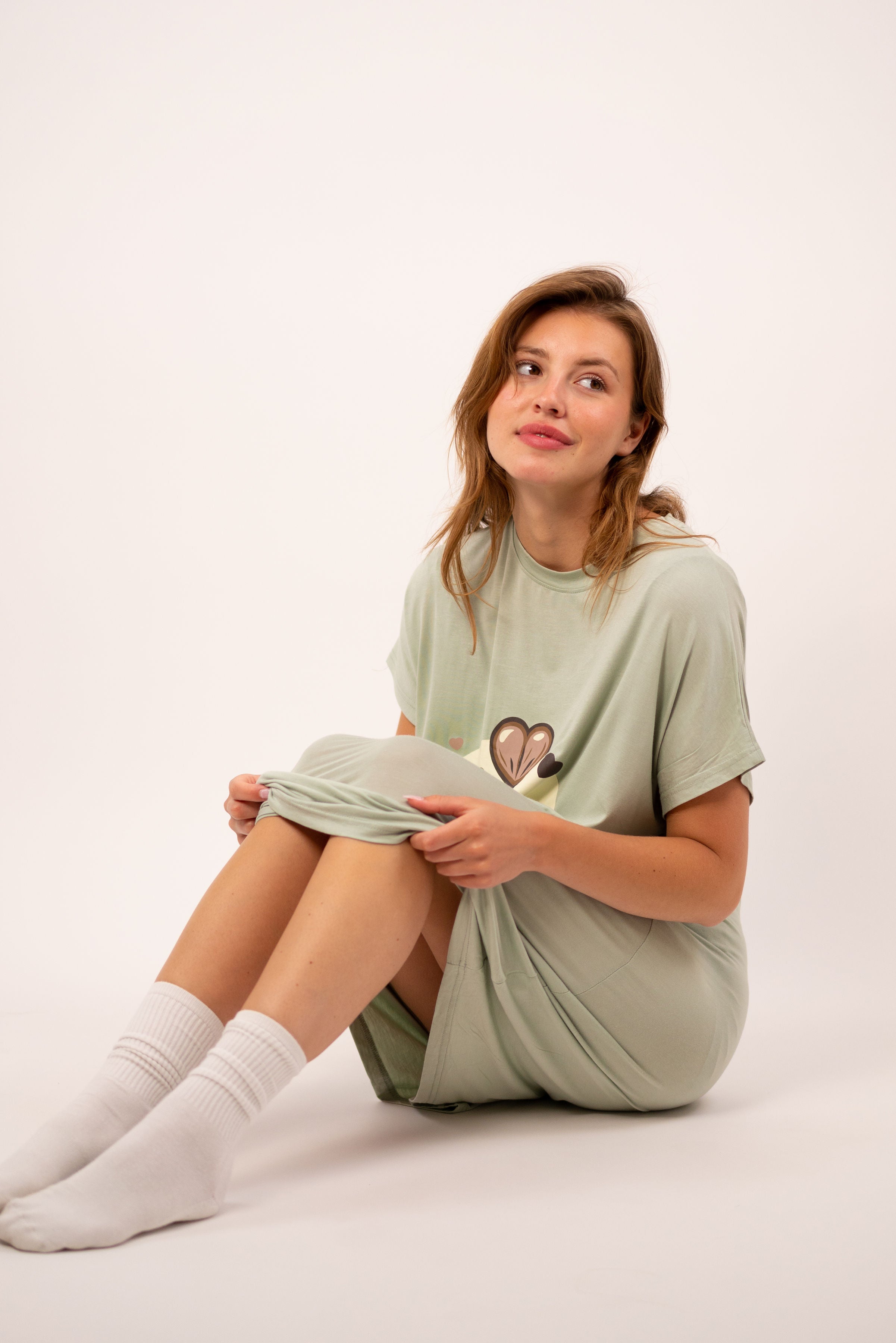 Sie liebten den sanften Komfort unserer SweetPlaid und SweetLegging. Jetzt stellen Sie sich vor, in ein extra großes und gemütliches T-Shirt eingehüllt zu sein, hergestellt aus ultra-weichen Bambus- und Baumwollfasern. Reines Glück!