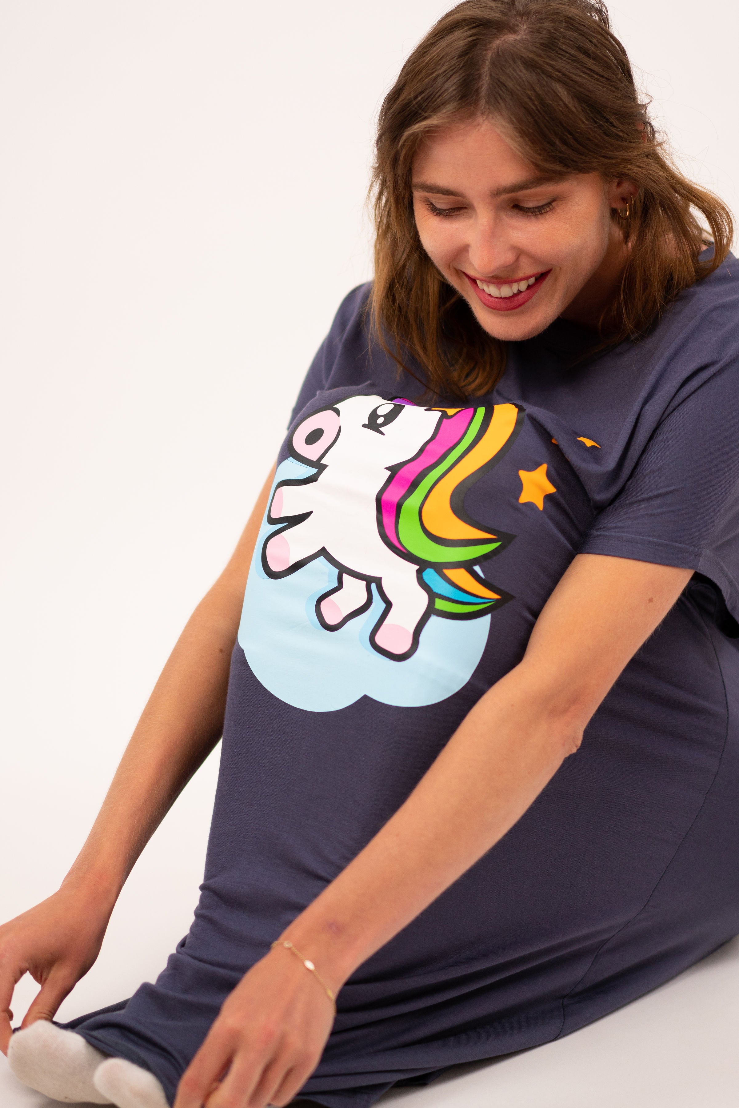 Sie liebten den sanften Komfort unserer SweetPlaid und SweetLegging. Jetzt stellen Sie sich vor, in ein extra großes und gemütliches T-Shirt eingehüllt zu sein, hergestellt aus ultra-weichen Bambus- und Baumwollfasern. Reines Glück!