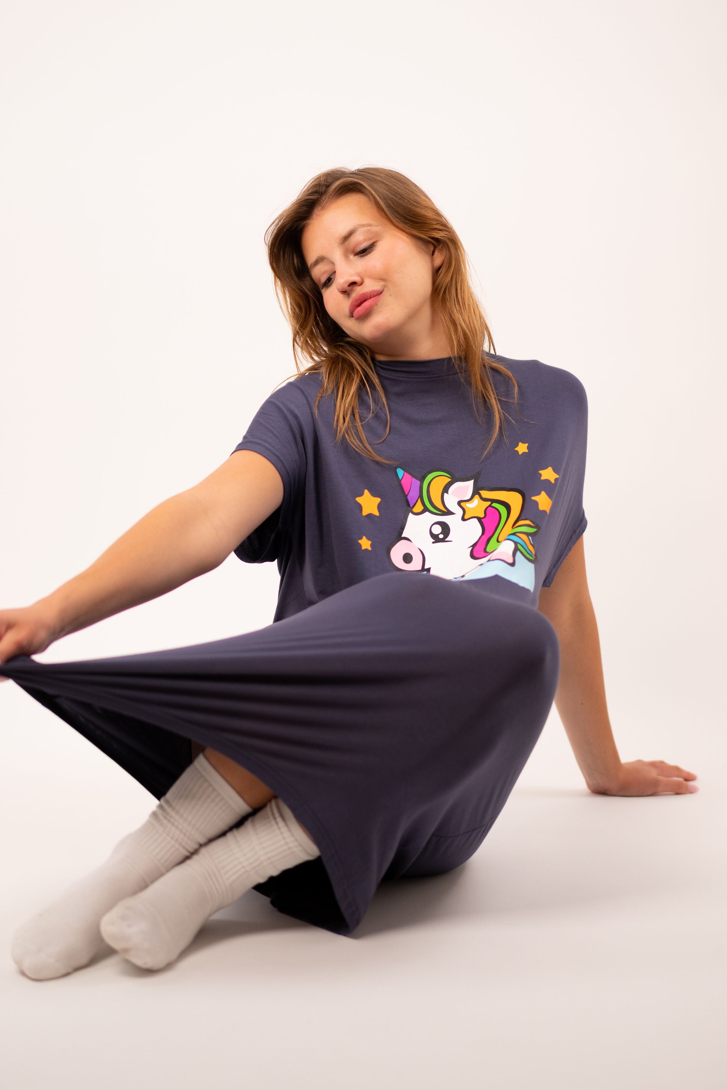 Sie liebten den sanften Komfort unserer SweetPlaid und SweetLegging. Jetzt stellen Sie sich vor, in ein extra großes und gemütliches T-Shirt eingehüllt zu sein, hergestellt aus ultra-weichen Bambus- und Baumwollfasern. Reines Glück!